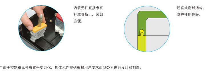 5、內(nèi)裝元件直接卡在標(biāo)準(zhǔn)的導(dǎo)軌上,元件上的凸起和導(dǎo)軌上的凹槽保證了內(nèi)置元件安裝在確定位置上;