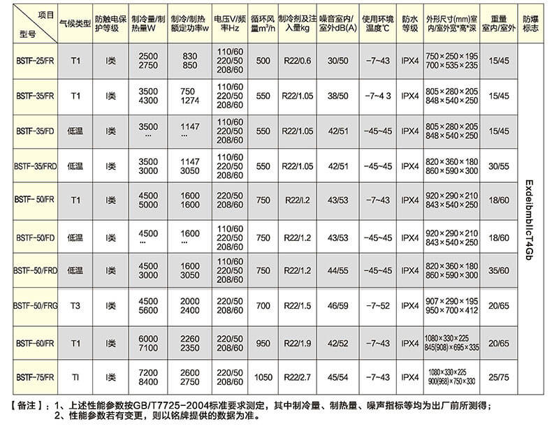 美的防爆空調(diào)主要型號技術(shù)參數(shù):