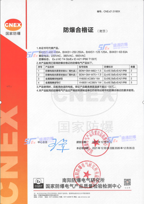 防爆電氣控制箱合格證BXK51-400